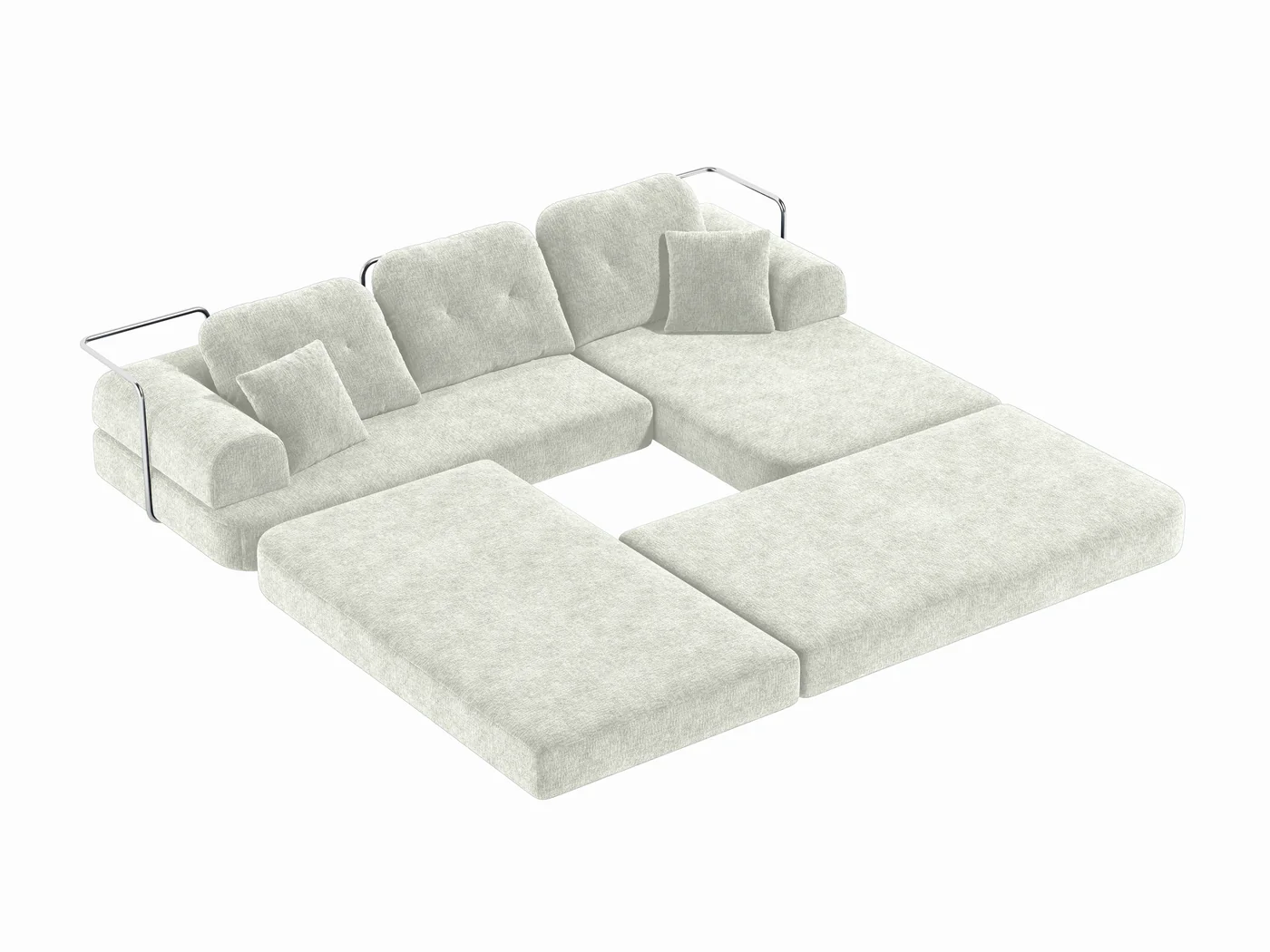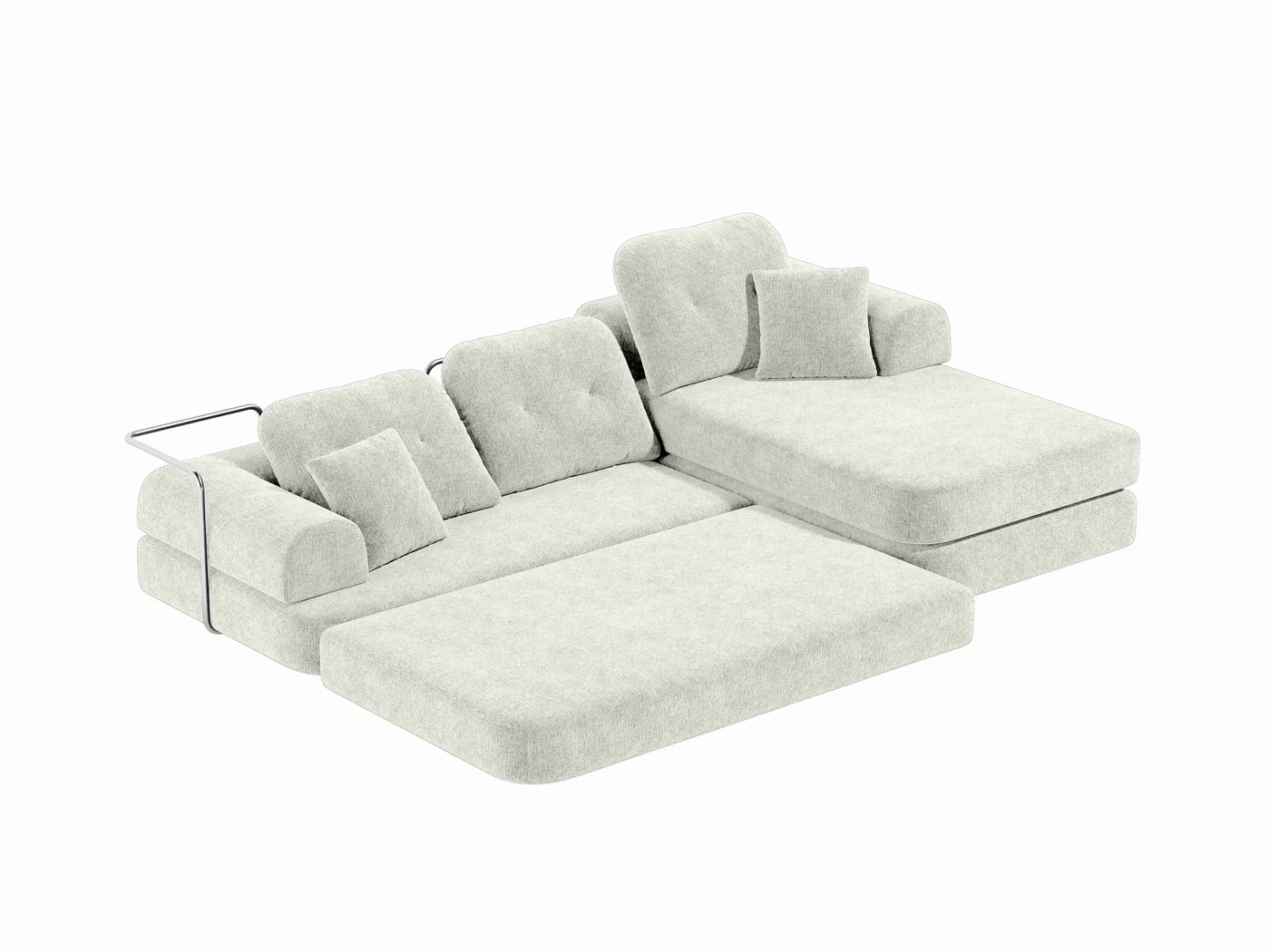 Свобода трансформации и сна Модульная система позволяет менять сценарии использования в зависимости от ситуации. Вы можете собрать классический угловой вариант для общения или создать огромное пространство для отдыха лежа. В полной раскладке диван превращается в просторное спальное место размером 392 на 168 см — настоящий «аэродром» для комфортного сна гостей или семейного кинопросмотра. Чтобы модули не разъезжались во время отдыха, дно оснащено специальным нескользящим покрытием, которое фиксирует секции на полу.
