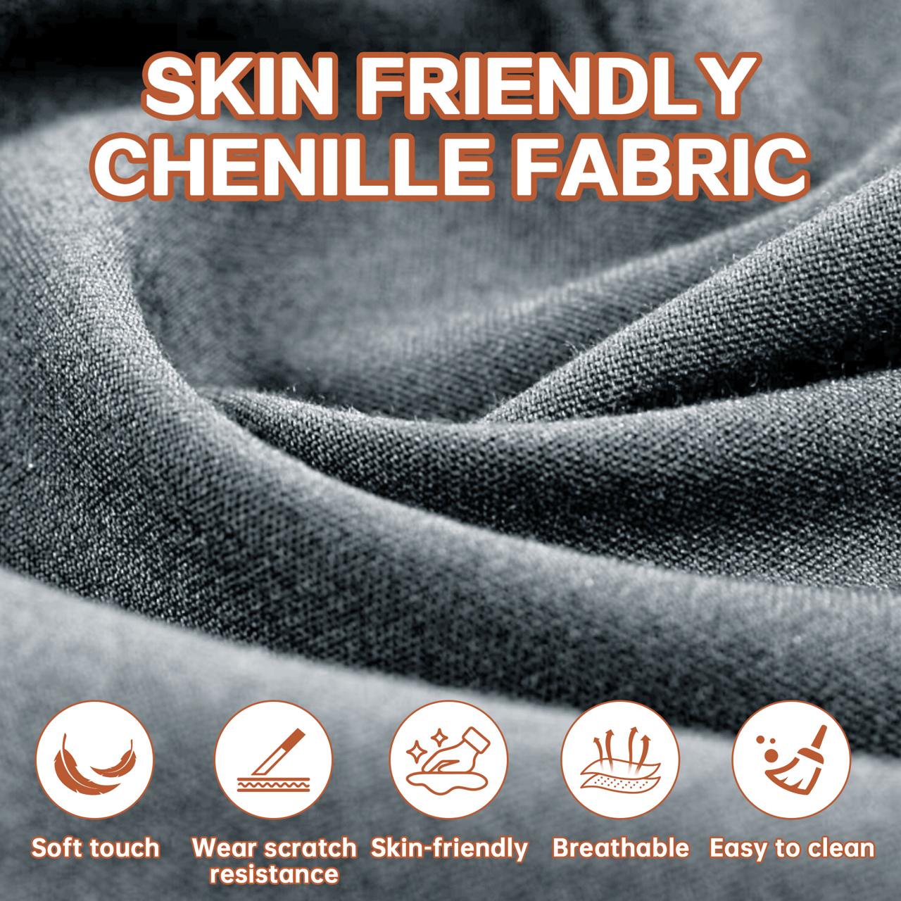 🐾 Премиальный Шенилл (450 г/м²) Обивка выполнена из плотного, износостойкого шенилла. Ткань обладает нежной бархатистой фактурой, «дышит» и легко чистится. Благодаря высокой плотности плетения, она устойчива к зацепкам и коготкам домашних животных (антивандальные свойства).