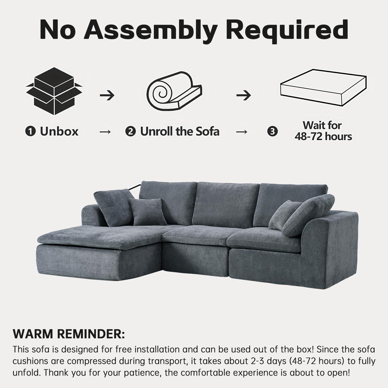 Сборка: Вам не нужны инструменты. Просто вскройте вакуумную упаковку — и за 24–72 часа диван наберет воздух и примет идеальную форму.